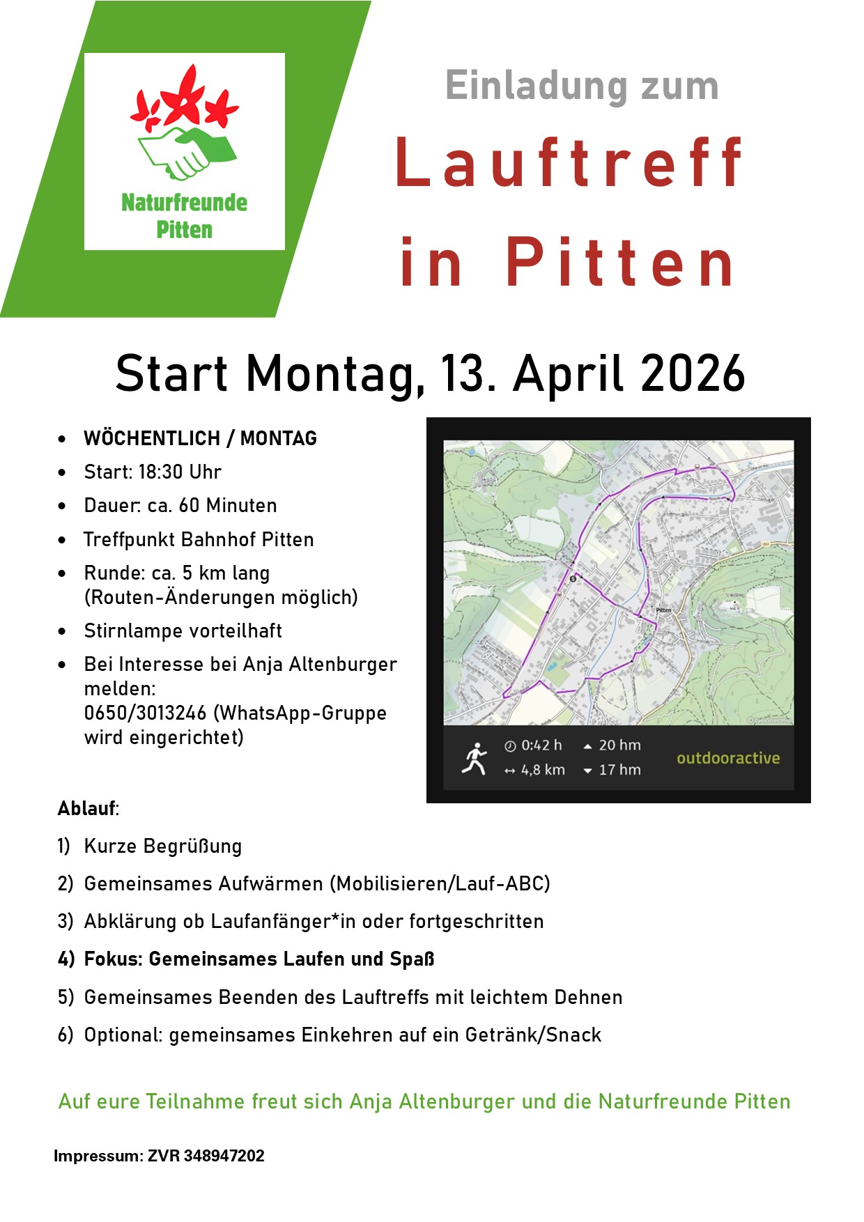 Zur Info: Der lauftreff startet ab jetzt jeden Montag um 18:30 beim Bahnhof
